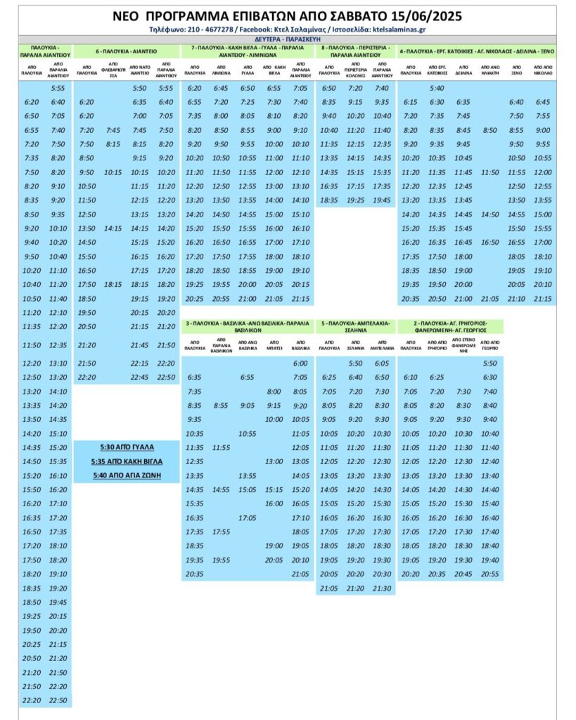 Η ενημέρωση αφορά το επιβατικό κοινό που μετακινείται εντός του νησιού, καθώς και εκείνους που επισκέπτονται τη Σαλαμίνα τους καλοκαιρινούς μήνες. Τα νέα δρομολόγια διαμορφώνονται με στόχο την καλύτερη εξυπηρέτηση του κοινού κατά την περίοδο αυξημένης τουριστικής και τοπικής κίνησης.