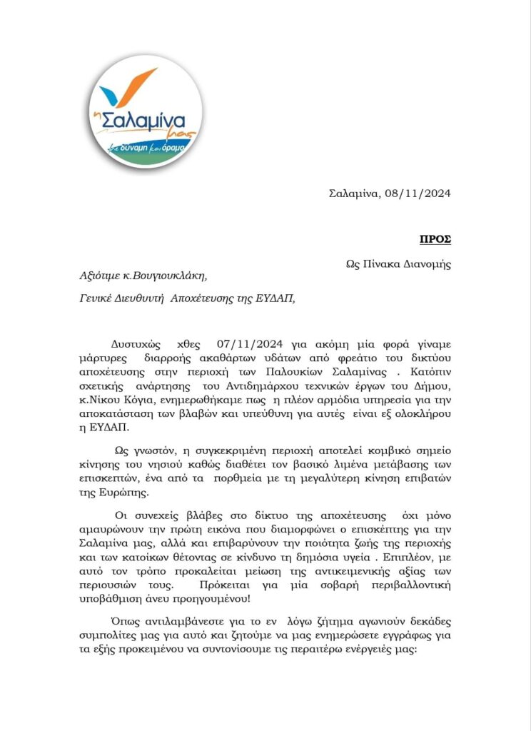 Υπενθυμίζω την επιστολή μου προς την ΕΥΔΑΠ για τα παλούκια που δεν πήρα ποτέ απάντηση.