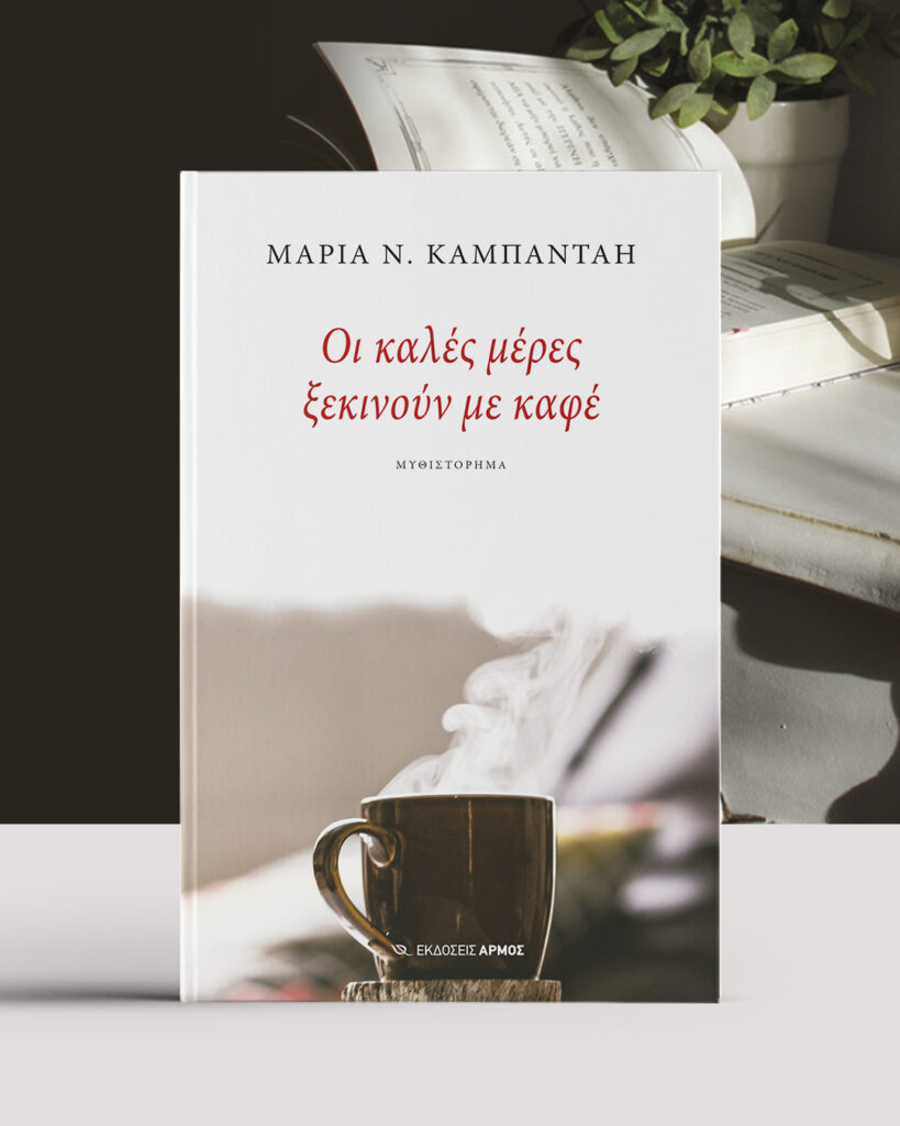 Το μυθιστόρημα «Οι καλές μέρες ξεκινούν με καφέ» κυκλοφορεί από τις Εκδόσεις Αρμός σε όλα τα βιβλιοπωλεία & ηλεκτρονικά καταστήματα. Ένα βιβλίο που θα σας κρατήσει συντροφιά με τον πιο τρυφερό τρόπο -σαν το άρωμα ενός πρωινού καφέ.