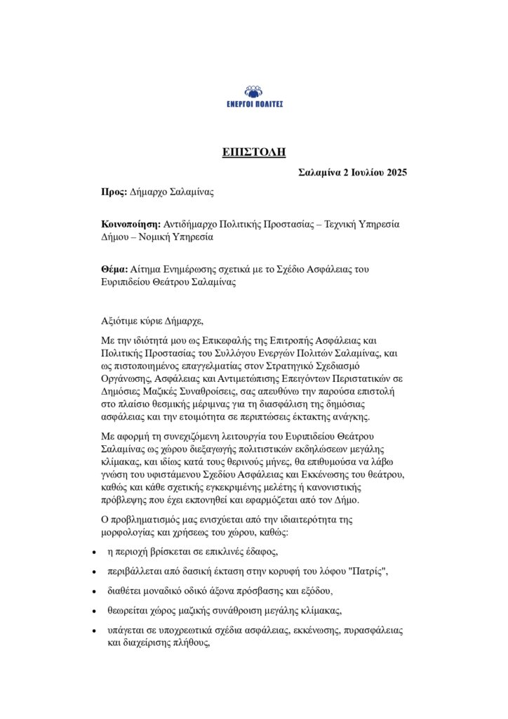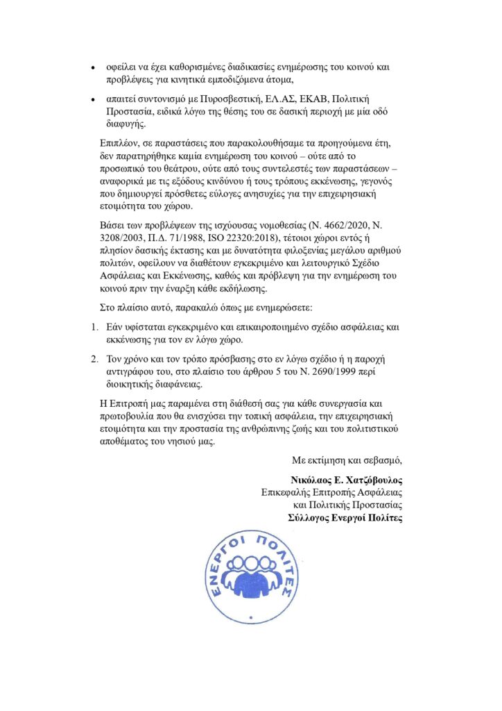 Ενεργοί Πολίτες: Επιστολή Σχεδίου Ασφαλείας Ευριπιδείου Θεάτρου