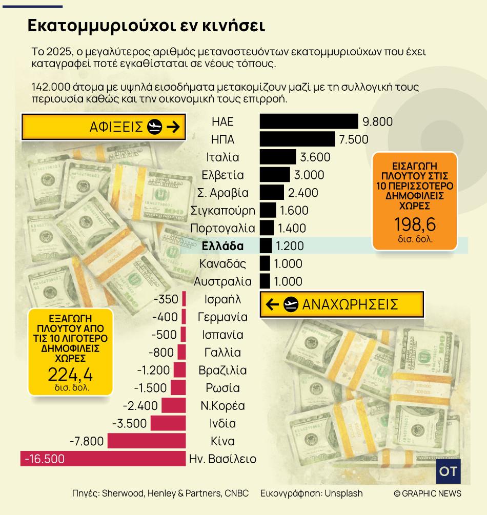 Οι εκατομμυριούχοι εγκαταλείπουν με ταχύτατους ρυθμούς χώρες από Μεγάλη Βρετανία, Κίνα και Ινδία Η μεγαλύτερη μετακίνηση εκατομμυριούχων στη σύγχρονη ιστορία αναμένεται να καταγραφεί το 2025, με... Η μεγαλύτερη μετακίνηση πλούτου στην ιστορία το 2025