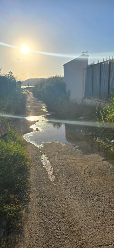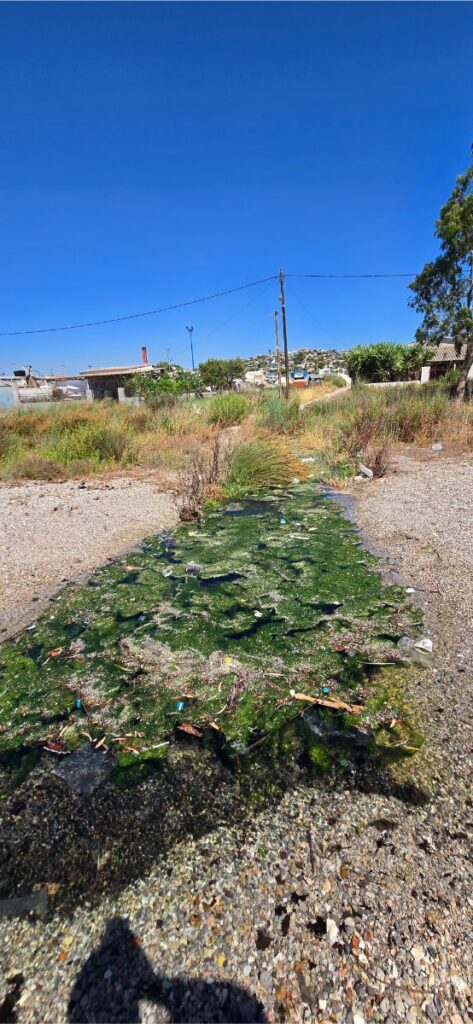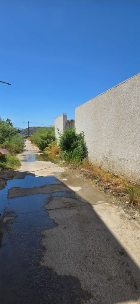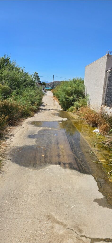 Το νερό αυτό λιμνάζει επί μήνες, χειμώνα – καλοκαίρι, δημιουργώντας λάσπη, γλίτσα και έντονη δυσοσμία. Τον χειμώνα, ο δρόμος γίνεται παγίδα, με ανθρώπους και μηχανάκια να γλιστρούν και να πέφτουν. Το καλοκαίρι, τα κουνούπια, οι κατσαρίδες και τα ποντίκια κατακλύζουν την περιοχή, καθιστώντας αδύνατη τη διαβίωση και επικίνδυνη την υγεία μας.