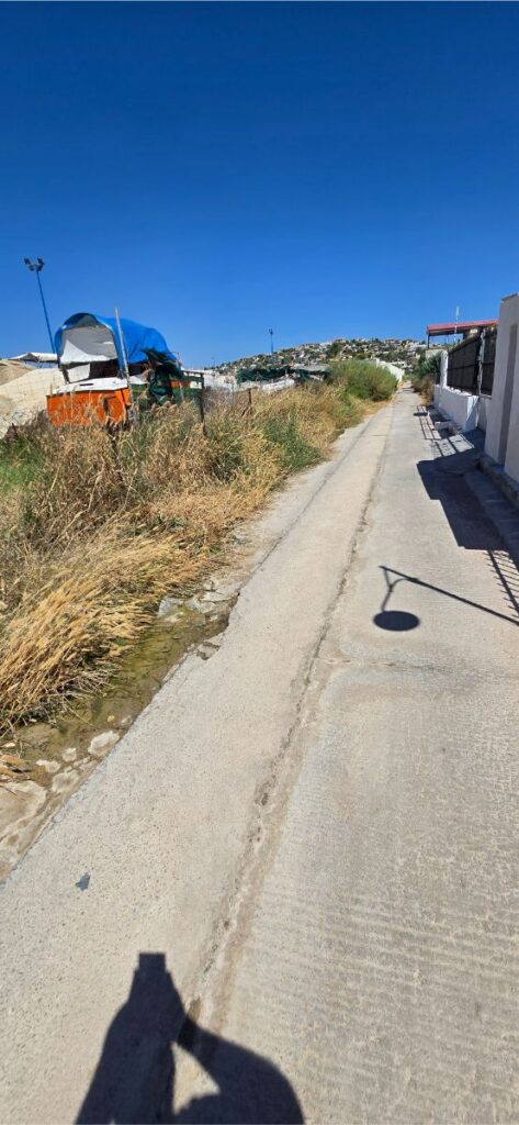 Ξερά χόρτα, σκουπίδια, μικρά δέντρα μέσα στον δρόμο – δεν υπάρχει διέλευση, δεν υπάρχει φωτισμός, δεν υπάρχει ασφάλεια. Ο κίνδυνος πυρκαγιάς είναι άμεσος, ειδικά μέσα στο καλοκαίρι.