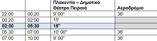 Συχνότητες διέλευσης γραμμής 3 του Μετρό από 22:00 έως 10:00
