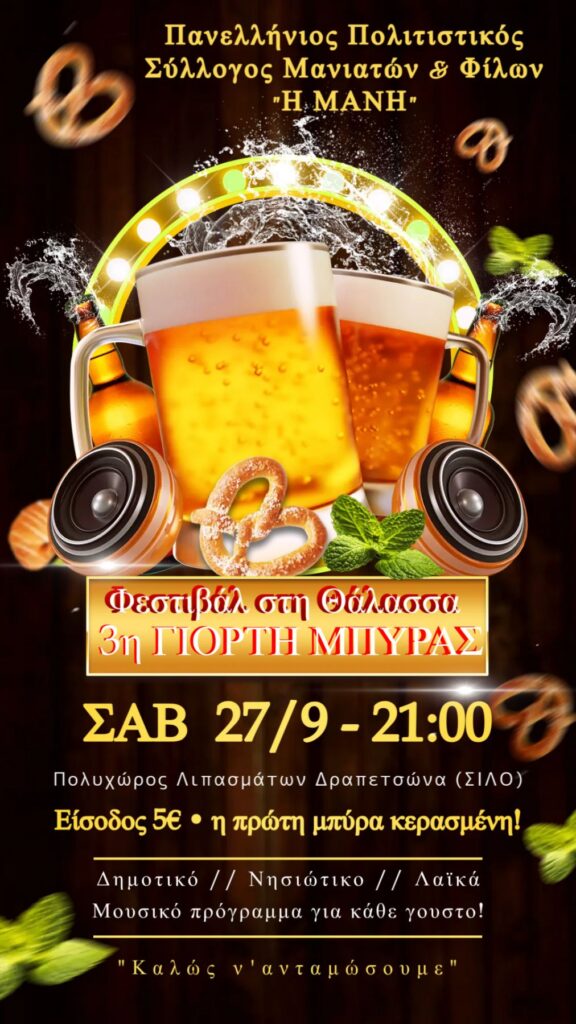 3η Γιορτή Μπύρας από τον Πανελλήνιο Πολιτιστικό Σύλλογο Μανιατών & Φίλων “Η ΜΑΝΗ”