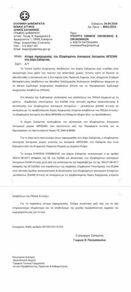 Γιατί από τον Απρίλιο του 2024, ο κος Παναγόπουλος ζητούσε διακαώς από κυβερνητικά στελέχη, την παραχώρηση της περιοχής που είναι χαρακτηρισμένη δημόσιο κτήμα, για τη δημιουργία Πράσινου Σημείου και ΣΜΑ.
