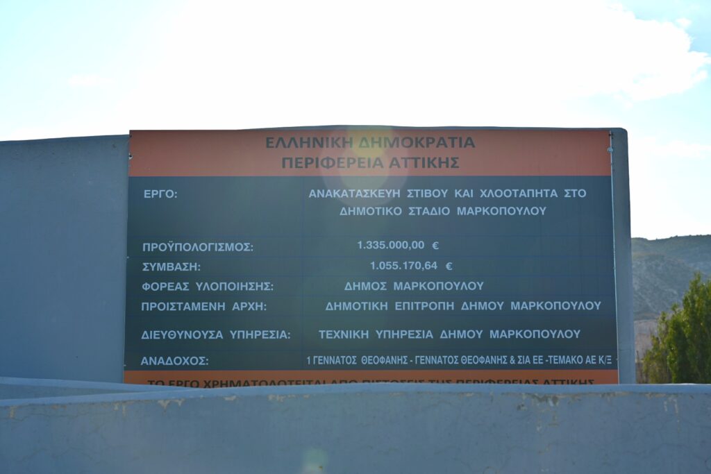 Με χρηματοδότηση ύψους 1,3 εκατ. ευρώ, στο πλαίσιο της στρατηγικής της Περιφέρειας για τη συνεχή αναβάθμιση των αθλητικών υποδομών σε όλη την Αττική, πραγματοποιείται η ανακατασκευή των διαδρόμων στίβου και του χλοοτάπητα στο Δημοτικό Στάδιο Μαρκόπουλου, η εγκατάσταση καμερών και ηλεκτρονικού τουρνικέ ασφαλείας, καθώς και η προμήθεια συστήματος απομακρυσμένης διαχείρισης.