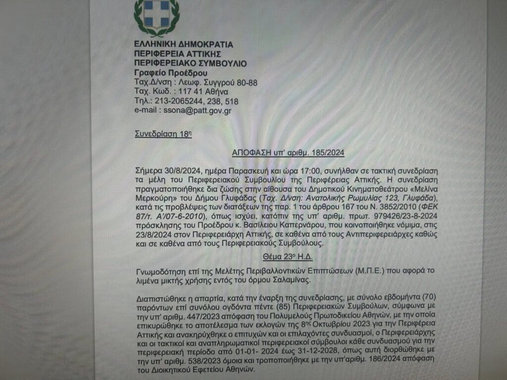 Κι ενώ κάποιοι έγραφαν για Greece enterprises και αναβαθμίσεις της Σαλαμίνας, εμείς συνεχίζουμε με ληγμένη ΜΠΕ, παράνομο ελλιμενισμό και πράξεις που επιβαρύνουν το θαλάσσιο περιβάλλον.