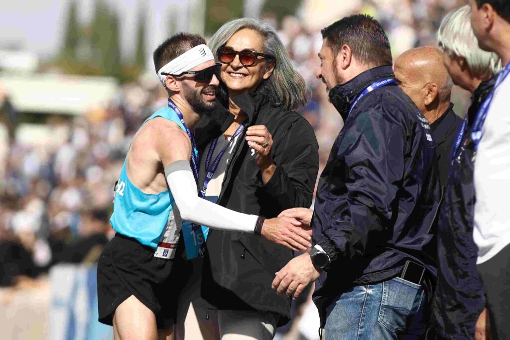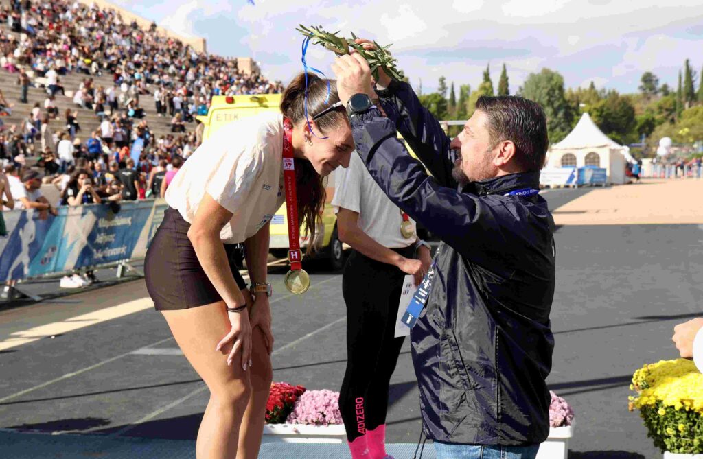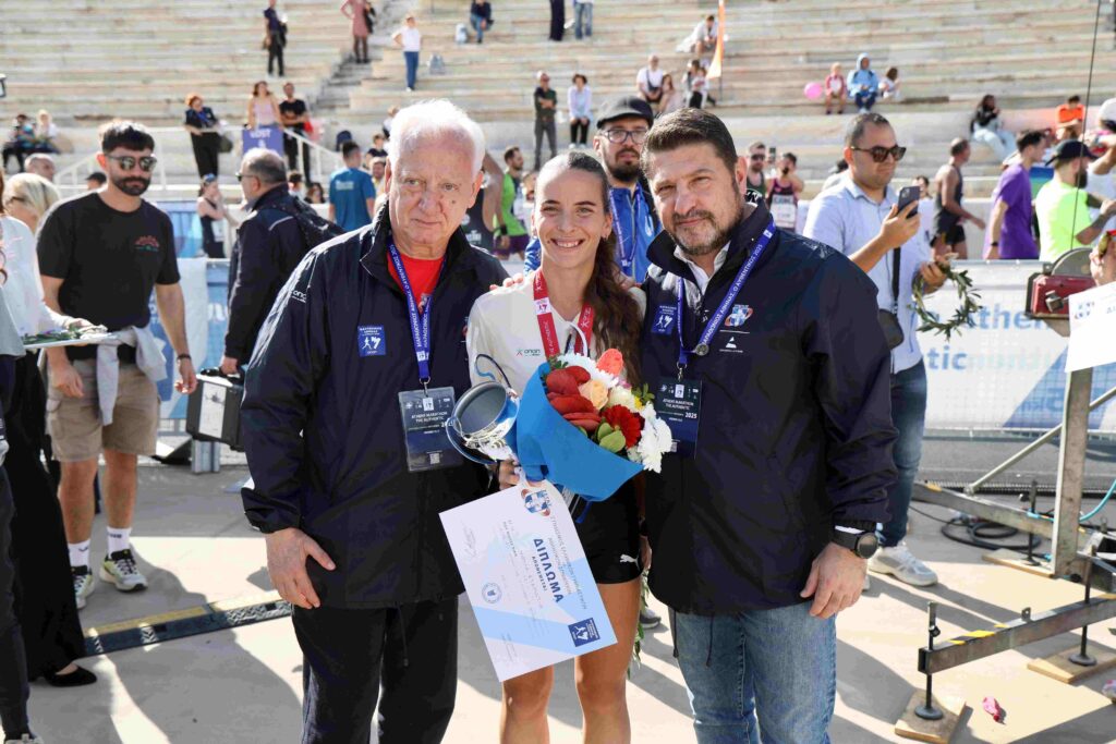 Ο κ. Χαρδαλιάς απένειμε το βραβείο στην αθλήτρια του Ν.Γ.Σ. «Ηρακλής» Σταματία Νούλα, την πρώτη γυναίκα δρομέα που πέρασε τη γραμμή του τερματισμού στο Καλλιμάρμαρο.