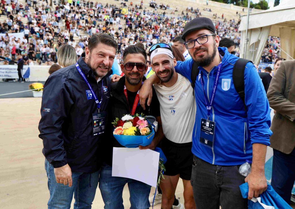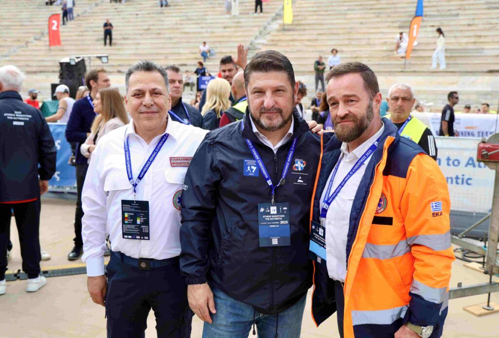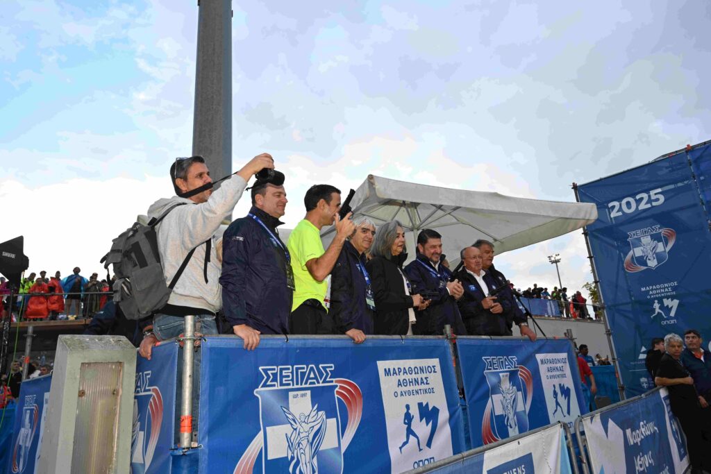 Αμέσως μετά, ο Περιφερειάρχης μετέβη στο Παναθηναϊκό Στάδιο, προκειμένου να υποδεχτεί τους δρομείς που τερμάτισαν πρώτοι στις διαδρομές του Μαραθωνίου, μαζί με τον Αναπληρωτή Υπουργό Αθλητισμού Γιάννη Βρούτση, τον Υπουργό Ανάπτυξης Τάκη Θεοδωρικάκο, τον Υφυπουργό Εσωτερικών Βασίλη Σπανάκη, τον Πρόεδρο της ΕΟΕ Iσίδωρο Κούβελο και την Πρόεδρο του ΣΕΓΑΣ Σοφία Σακοράφα.