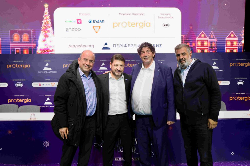 Ακολούθως, ο κ. Νίκος Χαρδαλιάς ευχαρίστησε θερμά τον μεγάλο χορηγό του Χριστουγεννιάτικου Χωριού, την Protergia «που για δεύτερη φορά στηρίζει έμπρακτα αυτή τη μεγάλη γιορτή, δίνοντας μια πραγματικά πνοή ζωής σε ένα από τα εμβληματικότερα πάρκα της Αττικής. Αγκάλιασε το όραμά μας και μας εμπιστεύτηκε από την πρώτη στιγμή – από πέρυσι, όταν ακόμη δεν είχαμε προλάβει να δώσουμε δείγματα γραφής. Ευχαριστώ βεβαίως και όλους τους υπόλοιπους σημαντικούς χορηγούς που μας δείχνουν την αμέριστη εμπιστοσύνη τους, την Cosmote Telekom, την ΕΥΔΑΠ, τη Snappi και το RELEASE ATHENS FESTIVAL, που μοιράζονται τη χαρά μας. Χορηγός επικοινωνίας είναι το μουσικό κανάλι MAD, που έχει αναλάβει και ολόκληρη την καλλιτεχνική επιμέλεια του μουσικού προγράμματος».