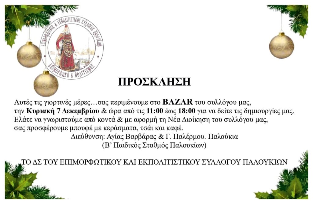 Επιμορφωτικός & Εκπολιτιστικός Σύλλογος Παλουκίων. Χριστουγεννιάτικο BAZAAR