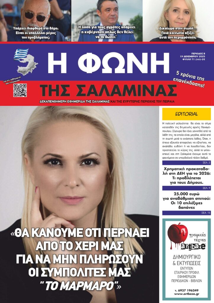 Με τις θερμότερες ευχές μας κυκλοφορεί το φύλλο Δεκεμβρίου 2025 της ΦΩΝΗΣ της ΣΑΛΑΜΙΝΑΣ-Δείτε το εξώφυλλο και διαβάστε το Editorial