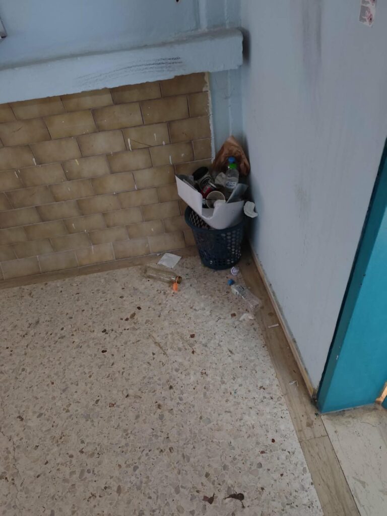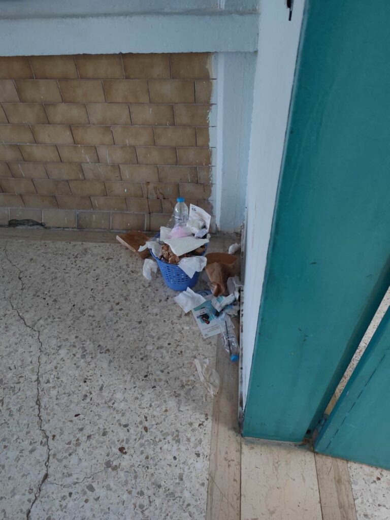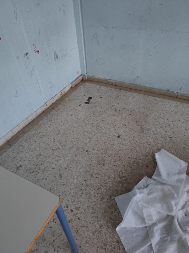 “Τίς τελευταίες 20 ημέρες λόγω άδειας τις καθαρίστριας δεν γίνονται καθαριότητες στο σχολείο με αποτέλεσμα να βρίσκεται σε άθλια κατάσταση.