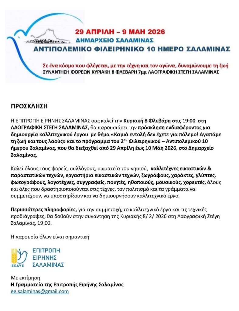 ΕκδηλώσειςΕΛΛΑΔΑΚΟΙΝΩΝΙΑΤΟΠΙΚΑ ΝΕΑ 7 Φεβρουαρίου 2026 fonisalaminas
