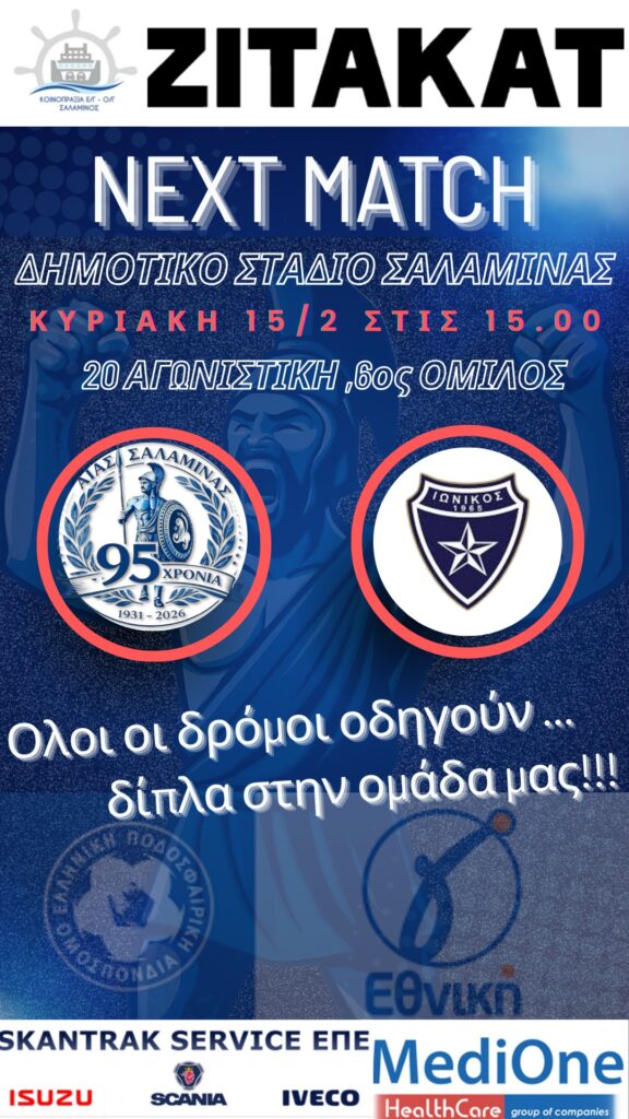 Αίας Σαλαμίνας. 15 Φεβρουαρίου απέναντι στον Ιωνικό. Αίας Σαλαμίνας. 15 Φεβρουαρίου απέναντι στον Ιωνικό.