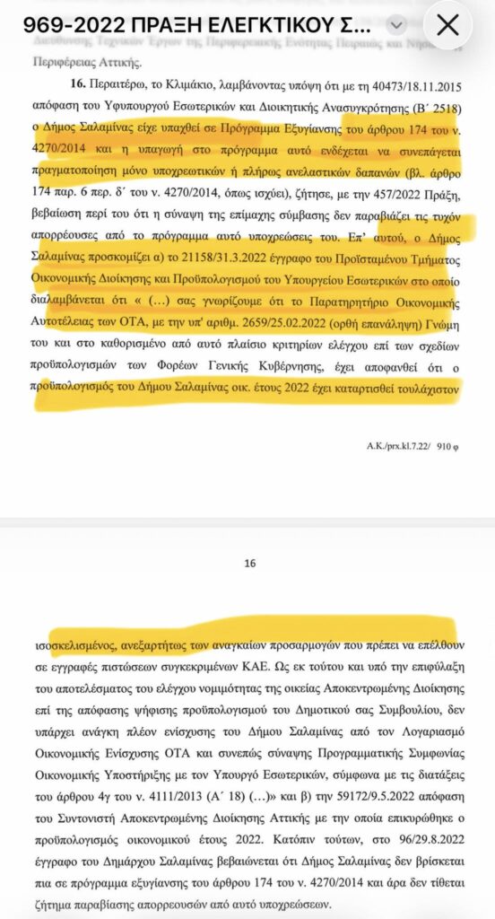 Η ίδια η απόφαση του Ελεγκτικού Συνεδρίου αναφέρει ότι, με βάση αυτά τα στοιχεία, δεν προκύπτει ανάγκη οικονομικής ενίσχυσης του Δήμου.
