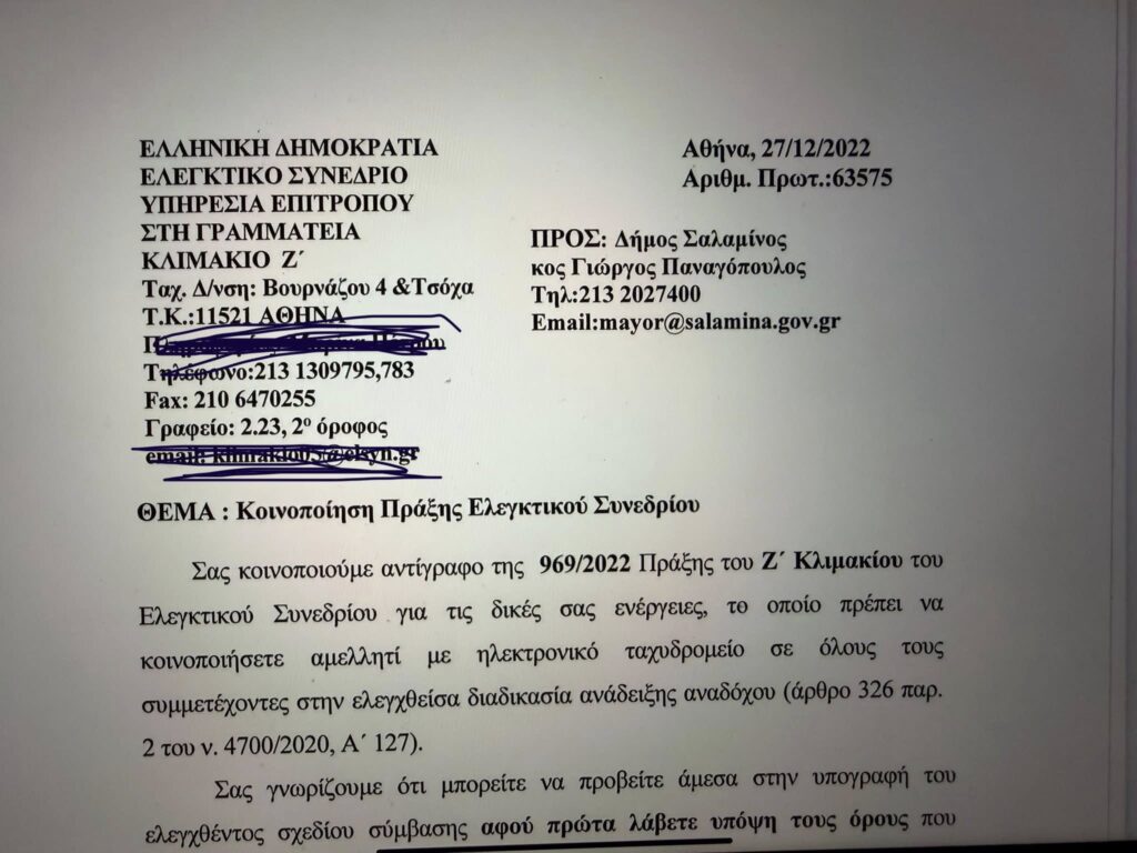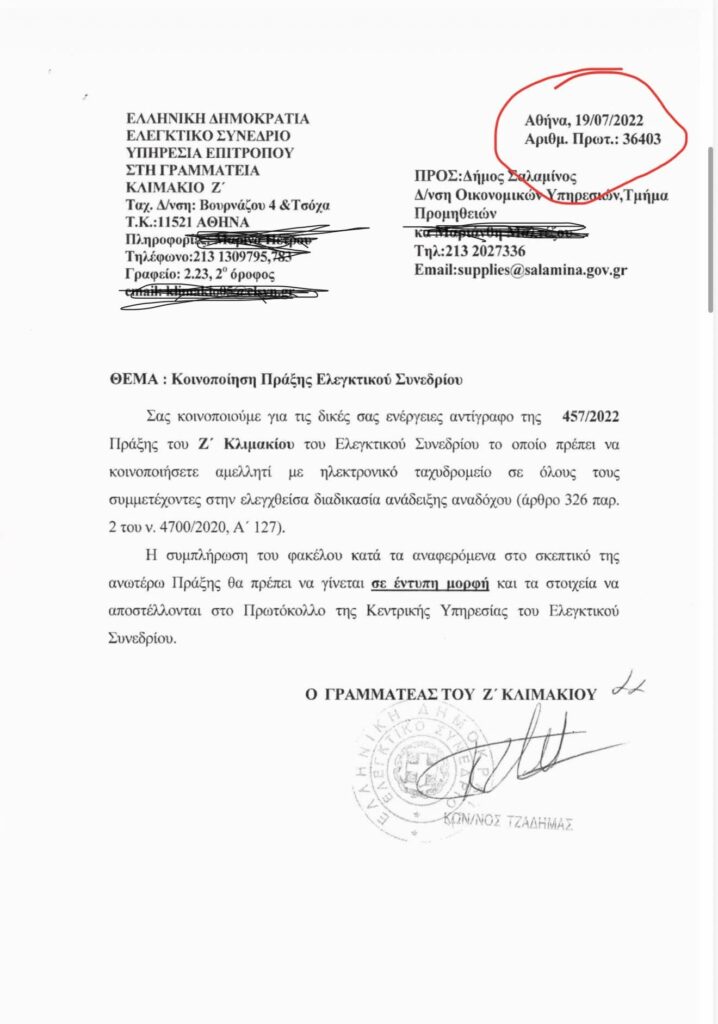Με επιστολή του ελεγκτικού συνεδρίου 19/7/2022, η σύμβαση του Δήμου με τη Globiled απορρίφθηκε από το Ελεγκτικό Συνέδριο.