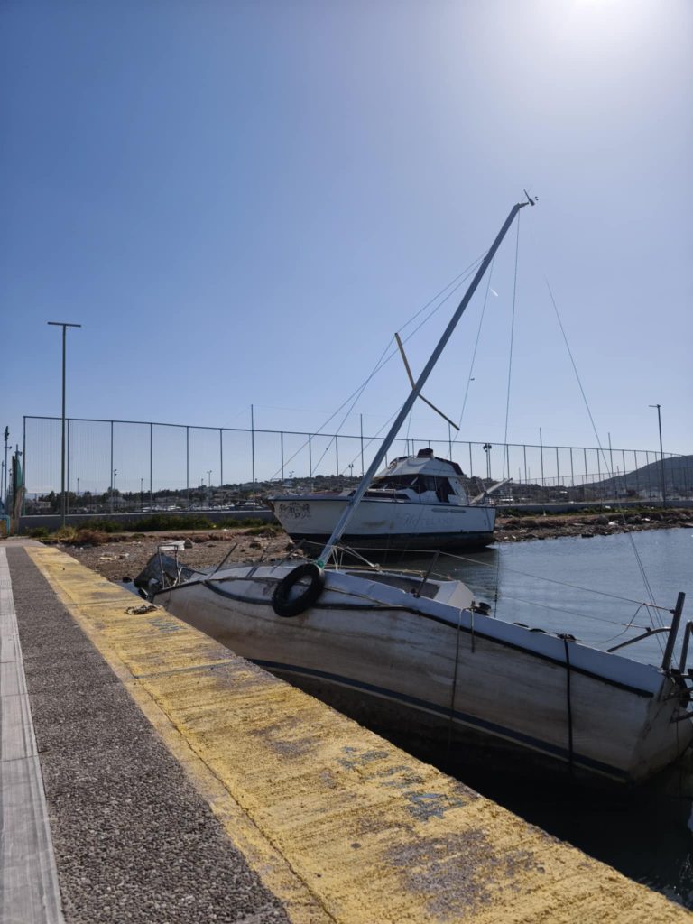 Σκουπίδια στην ακτογραμμή, εγκαταλελειμμένα και μισοβυθισμένα σκάφη μέσα στον κόλπο, πρόχειρες προσδέσεις και μια γενικευμένη εικόνα εγκατάλειψης. Οι λιμενικές υποδομές δείχνουν να έχουν αφεθεί στην τύχη τους, ενώ η συνολική εικόνα δημιουργεί την αίσθηση ότι ο χώρος λειτουργεί χωρίς ουσιαστική διαχείριση.