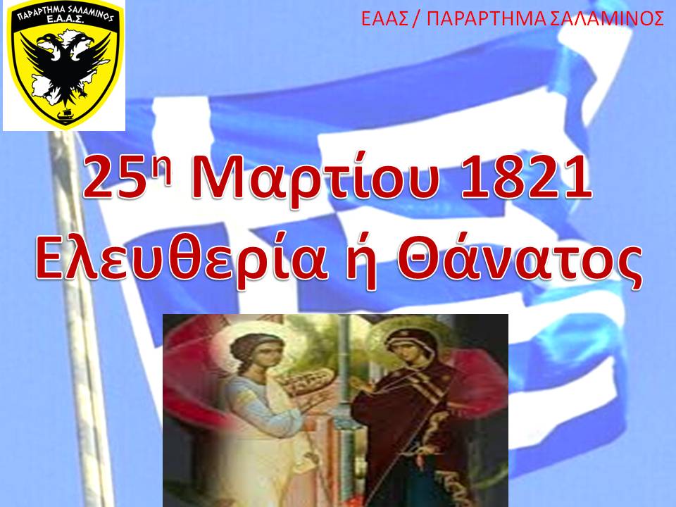 Το Τοπικό Συμβούλιο του Παραρτήματος Σαλαμίνος – ΠΕ Νήσων Αττικής αποστέλλει με την παρούσα κάρτα τις θερμότερες ευχές του για την εθνική επέτειο.