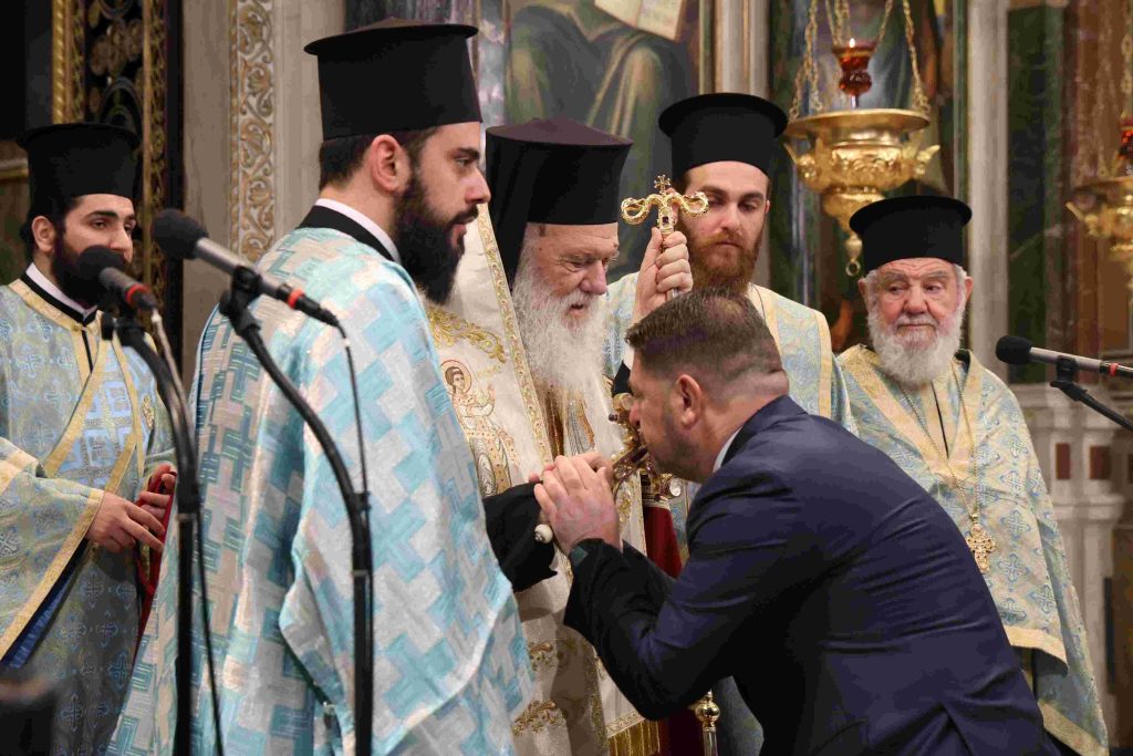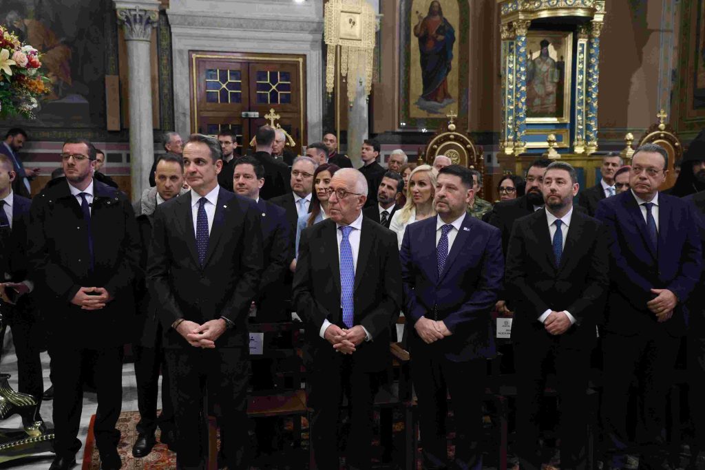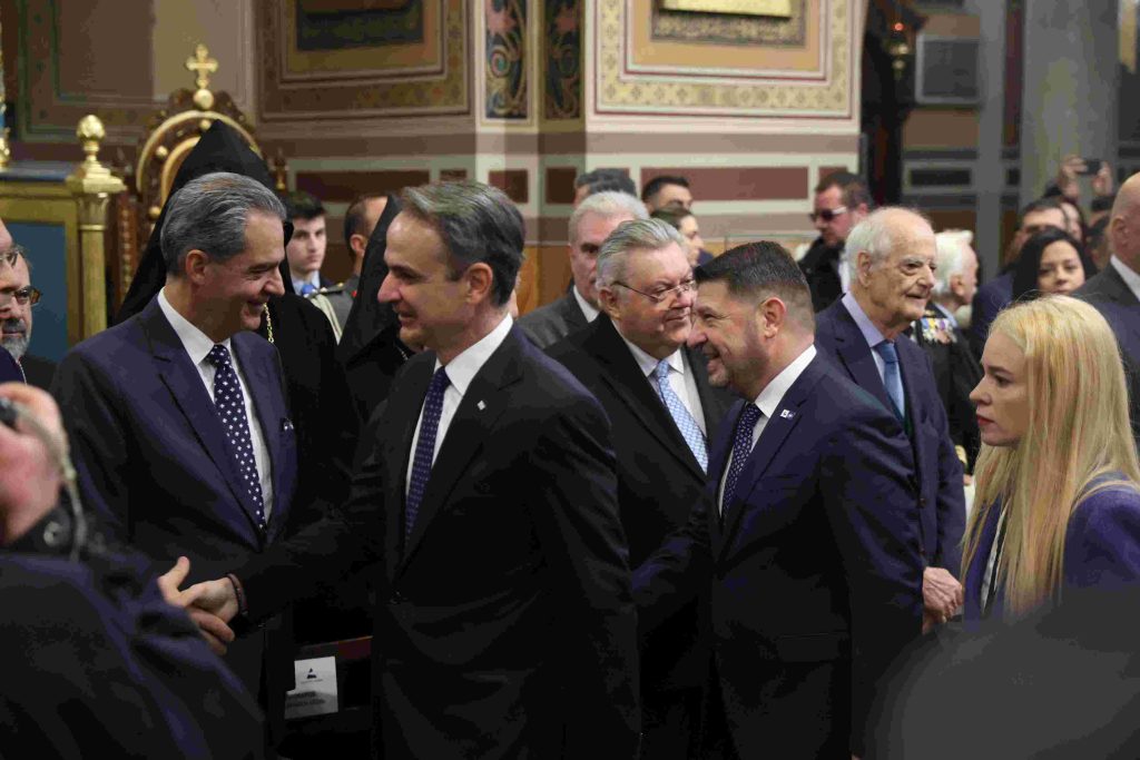 Εντός του μητροπολιτικού ναού, την πολιτειακή και πολιτική ηγεσία υποδέχτηκε ο Αρχιεπίσκοπος Αθηνών και Πάσης Ελλάδος κ.κ. Ιερώνυμος, ο οποίος χοροστάτησε στη δοξολογία.