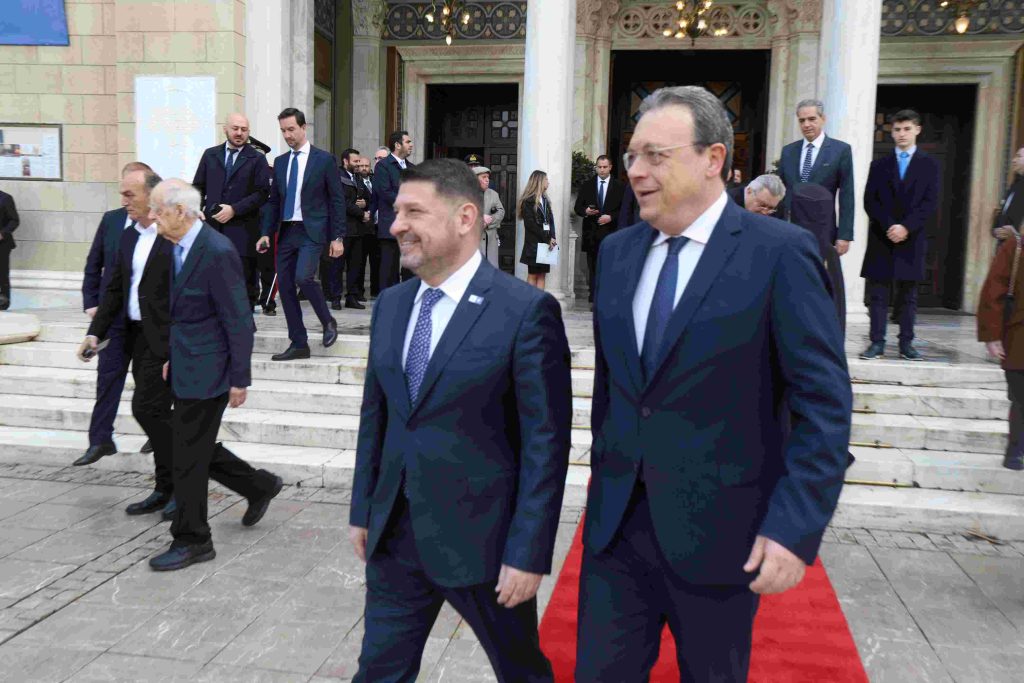 Στην είσοδο της Μητρόπολης, ο Περιφερειάρχης Αττικής υποδέχτηκε τον Πρόεδρο της Δημοκρατίας Κωνσταντίνο Τασούλα, μαζί με τον Πρωθυπουργό Κυριάκο Μητσοτάκη, τον Πρόεδρο της Βουλής Νικήτα Κακλαμάνη, τον Δήμαρχο Αθηναίων Χάρη Δούκα και τον Πρωτοσύγκελο της Ιεράς Αρχιεπισκοπής Αθηνών, Θεοφιλέστατο Επίσκοπο Χριστουπόλεως κ. Βαρνάβα, ενώ στρατιωτικό άγημα απέδιδε τιμές.