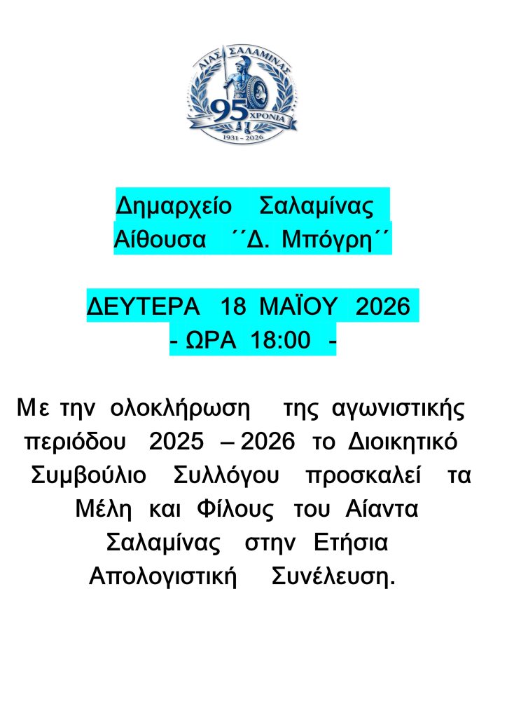 ΑΠΟΛΟΓΙΣΤΙΚΗ ΣΥΝΕΛΕΥΣΗ ΑΙΑΝΤΑ ΣΑΛΑΜΙΝΑΣ